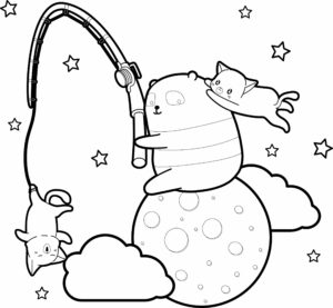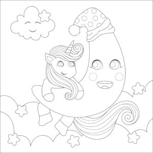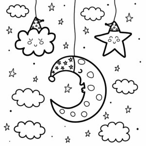 These imaginative moon coloring pages are a great way to get creative whether it’s a sunny day or a moon filled night. Show off your artistic talent by coloring in these beautiful space scenes. You’ll find images of the moon alongside stars, clouds, or sleepy critters.