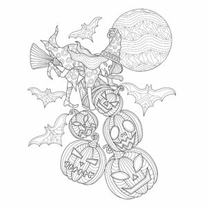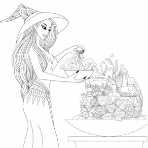 Let these coloring pages put a spell on you. You can choose from a variety of spooky scenes like eerie witch houses, mysterious potions, or cute broomstick flights. Kids and adults can both enjoy coloring in these exciting pictures. Some are super simple for coloring beginners, while others are more intricate for the experienced artists. All you need to get started is your creepy creativity and your favorite freaky art supplies.