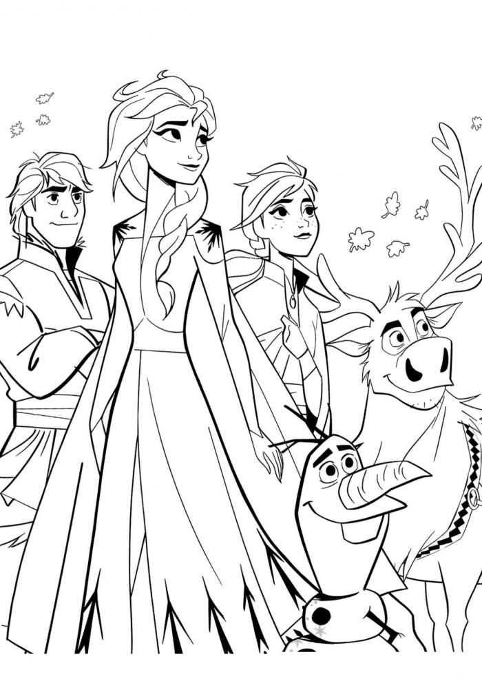 Elsa, Anna, Kristoff, Olaf, and Sven