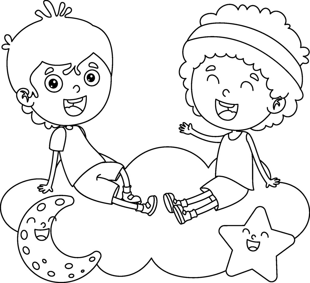 Friends in the clouds with the moon and stars