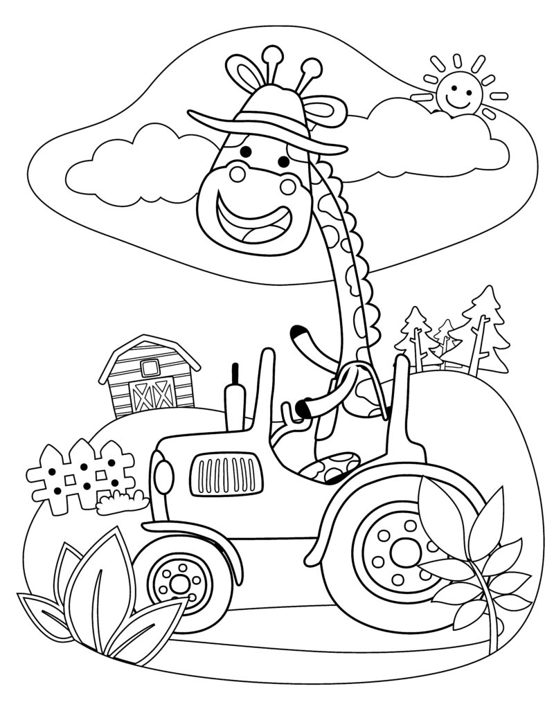 Giraffe riding a tractor on a farm - SmartStory
