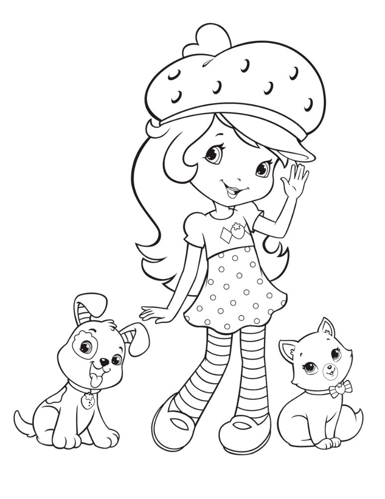Free Strawberry Shortcake and puppies coloring sheet sheet and PDF to print
